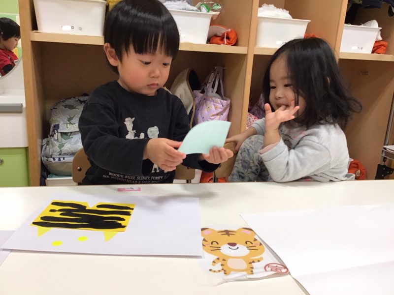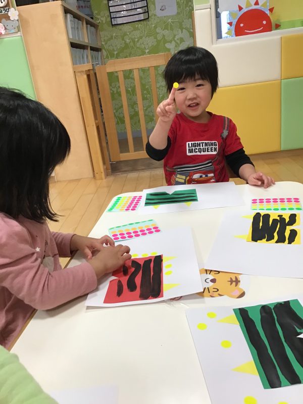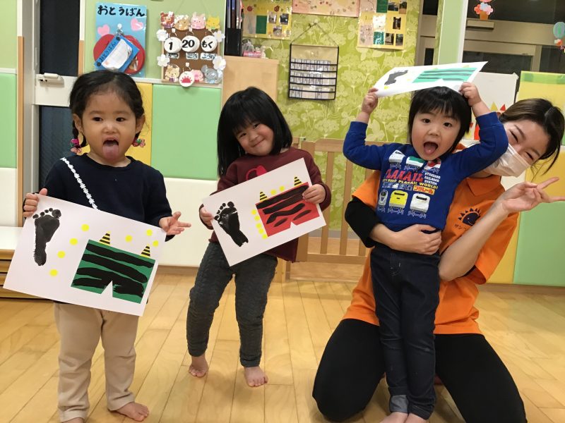 先生が「今から絵本に出てきた鬼のパンツを作るよ?」とお話しをすると、嬉しそうな子ども達????✨