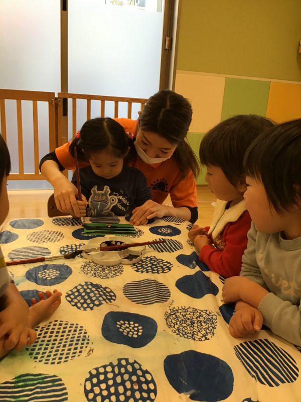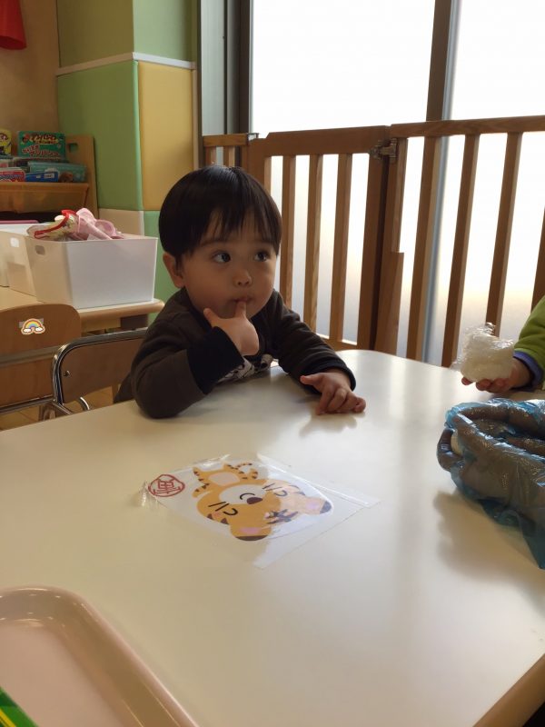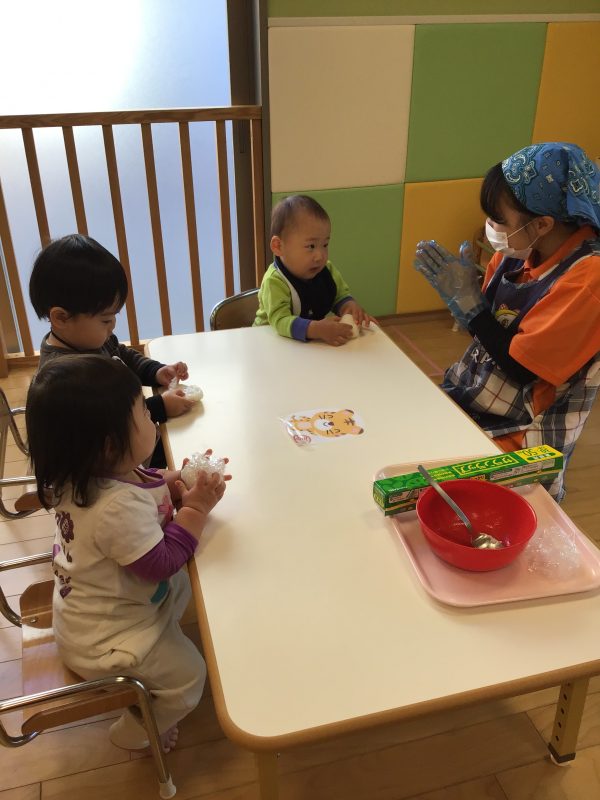 初めての光景に少し不思議そうにしていた子ども達ですが、すぐに「早くやりたい❗️」と手を伸ばしたお友達もいれば、いいの❔触っていいの⁉️と様子を伺いながら触っているお友達もいましたよ?