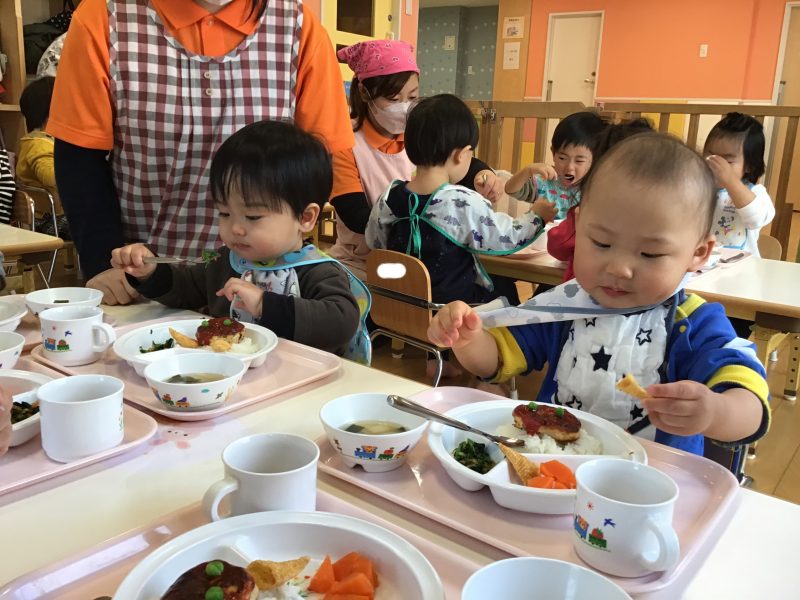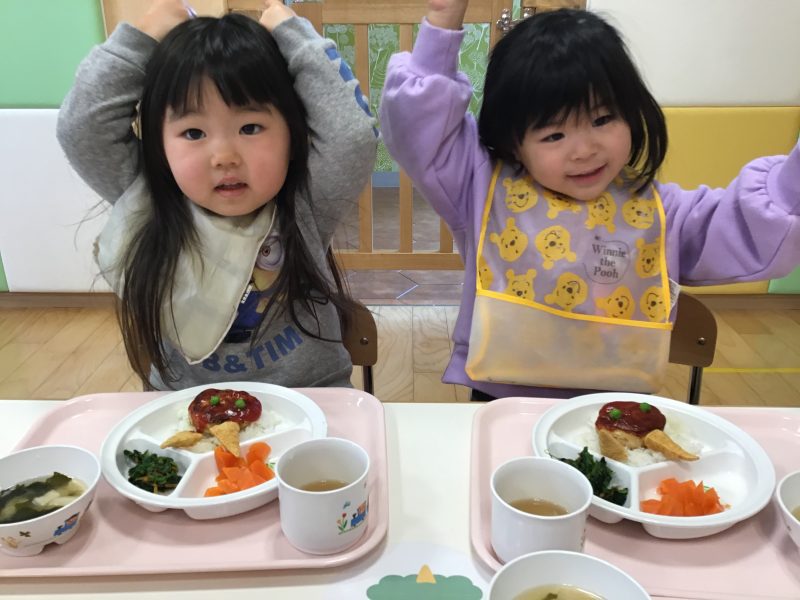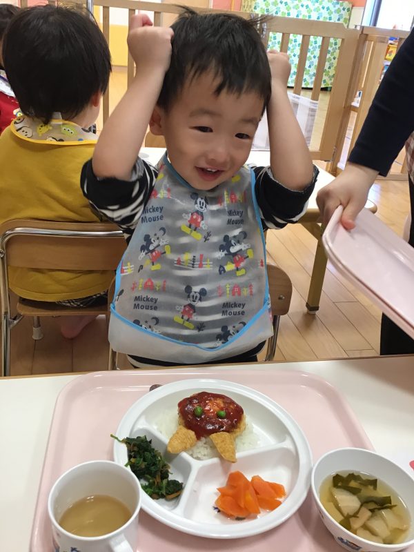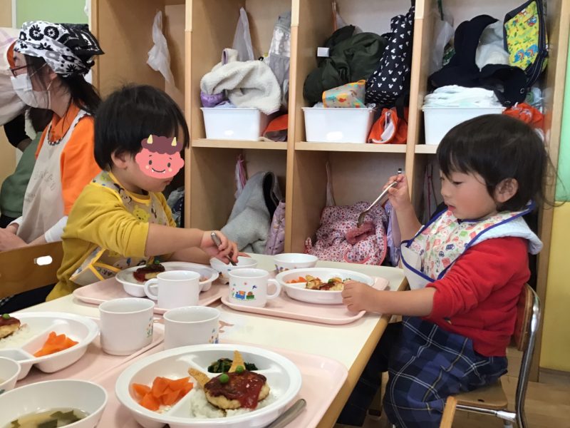 この日は「鬼のハンバーグ?」が出てきて子ども達も大喜び???
