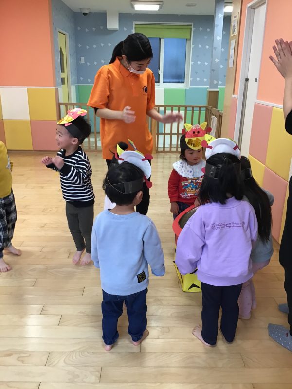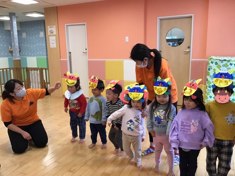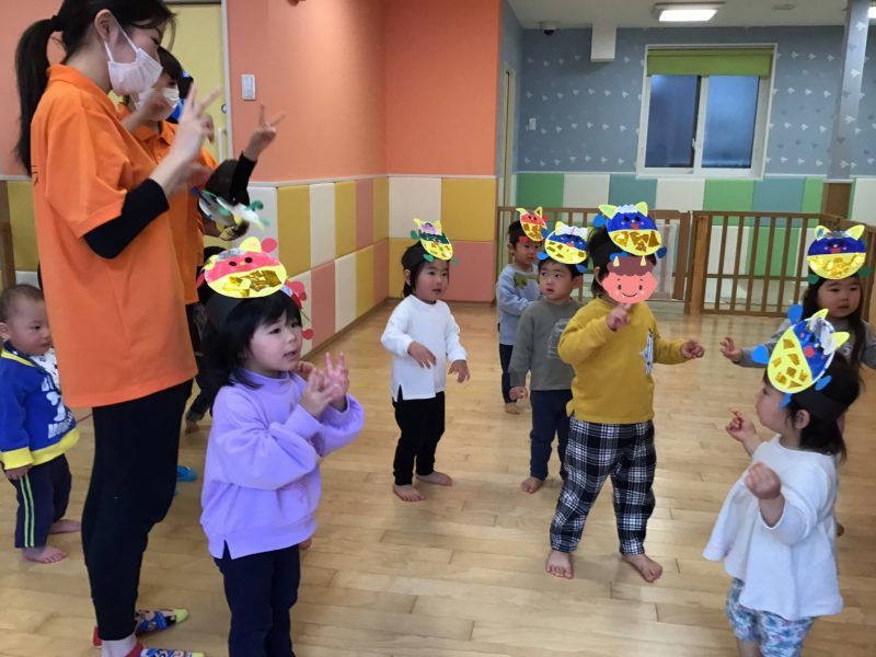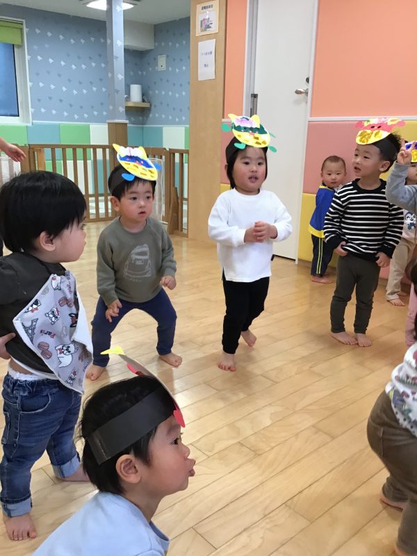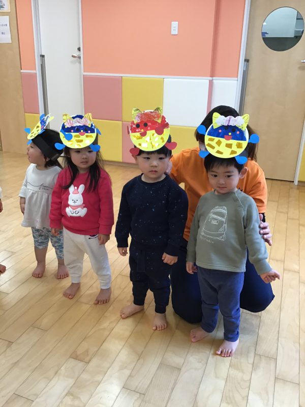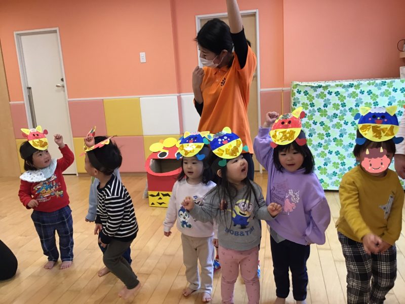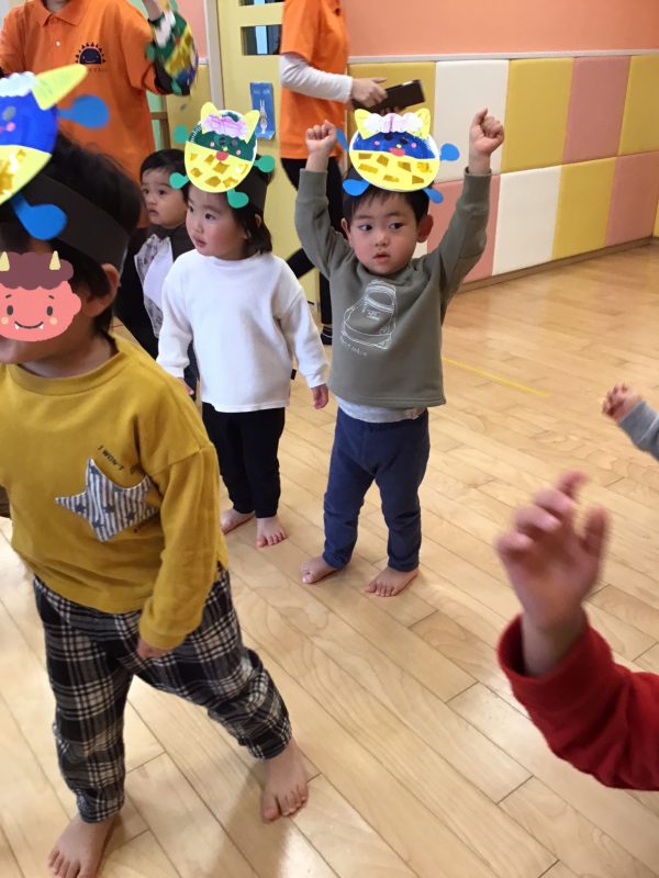今月はカリキュラムの体操の時間にも「鬼のパンツ」を踊っていたので、曲が流れると「鬼のパンツだ〜!」と嬉しそうな声があがっていました☺️?