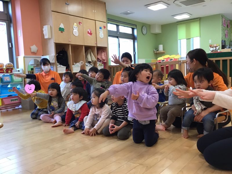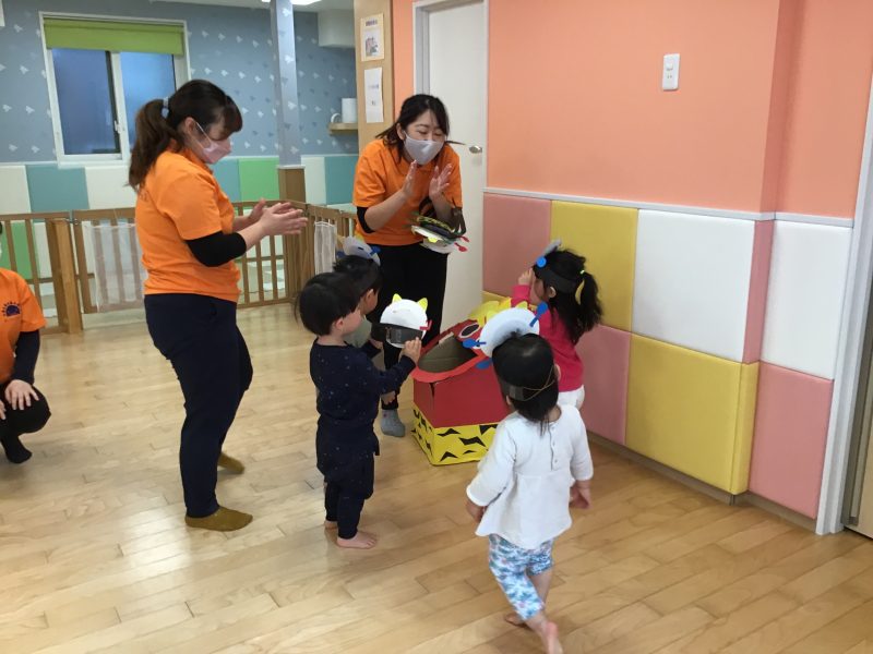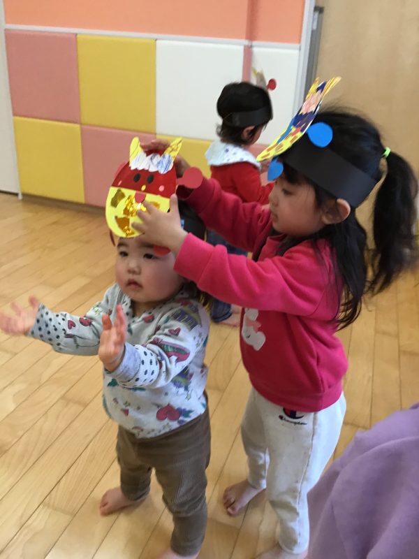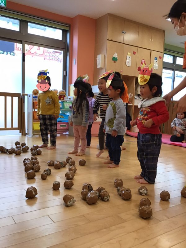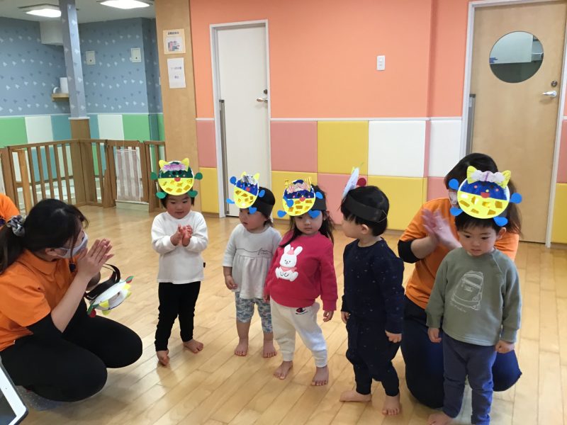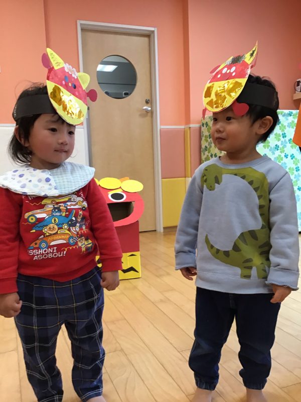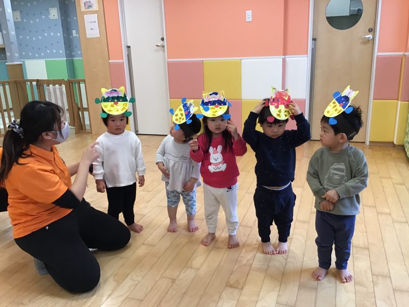 今月はカリキュラムの体操の時間にも「鬼のパンツ」を踊っていたので、曲が流れると「鬼のパンツだ〜!」と嬉しそうな声があがっていました☺️?