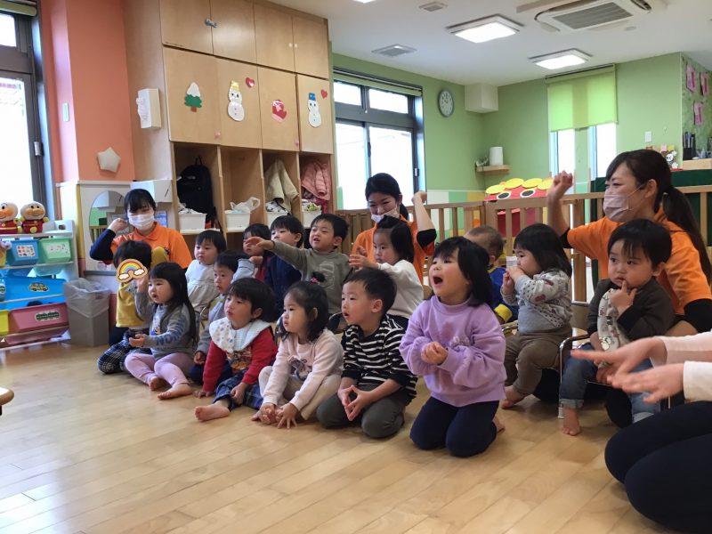 節分らしい絵本を見て、ますます節分会への期待が増していた子ども達でした?