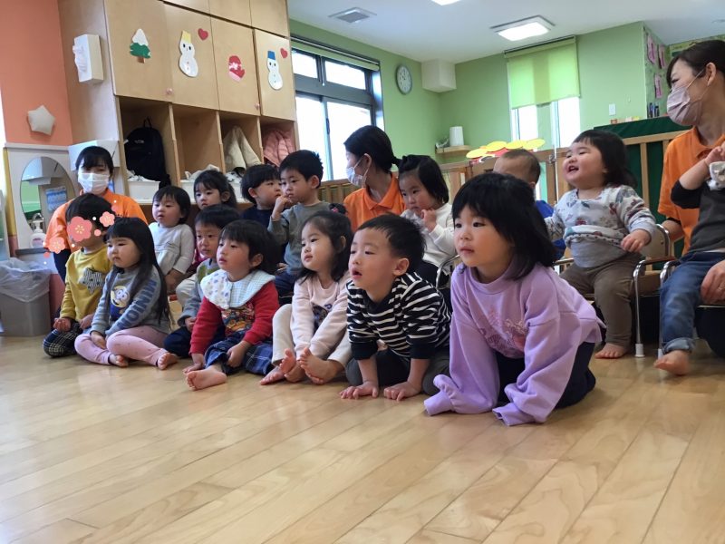まず最初は「ちいちゃんのまめまき」の絵本の読み聞かせから始まりました?✨