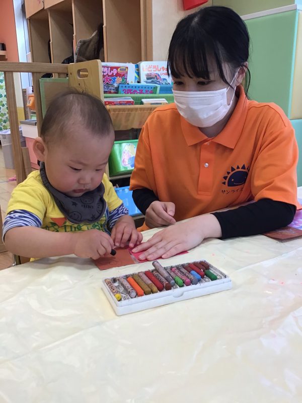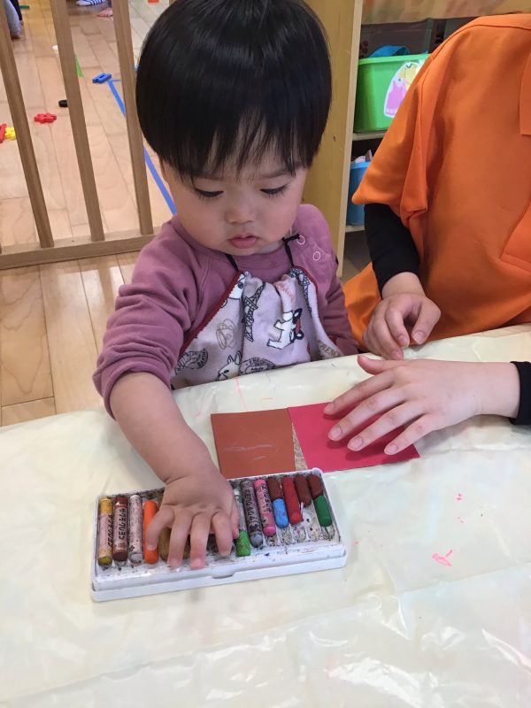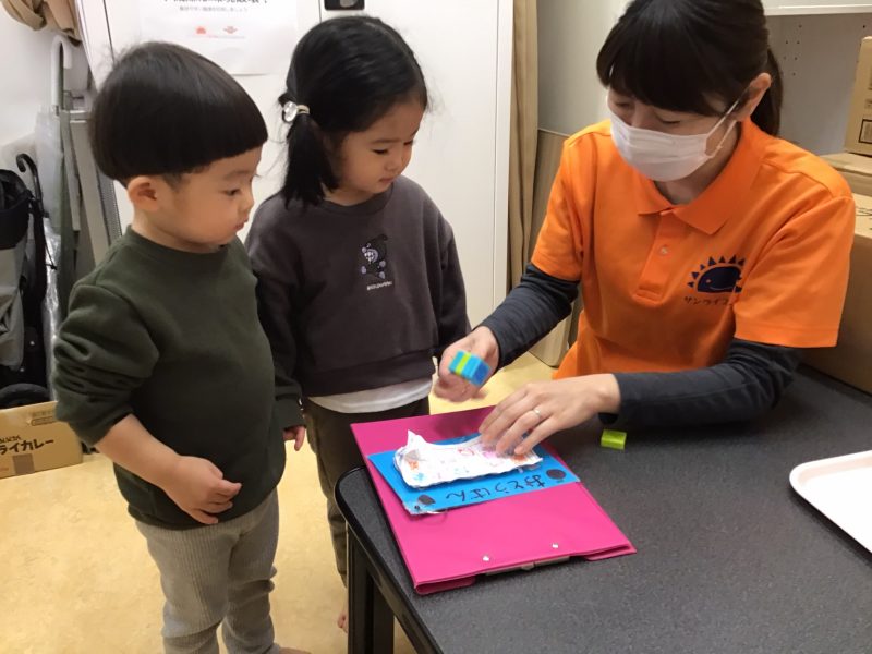 そして、もも組さんは、最近少しずつ順番を待つことができるようになり、この日もお友達が製作をしている間は「何をしているのかな」と不思議そうな表情をしながらも、自分の順番がくるまで座って待っていてくれましたよ?