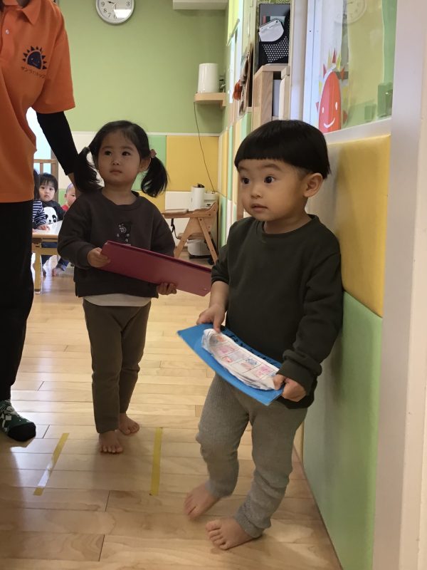 そして、今週からなんと、もも組さん?といちご組さん?もお当番活動に加わりました??