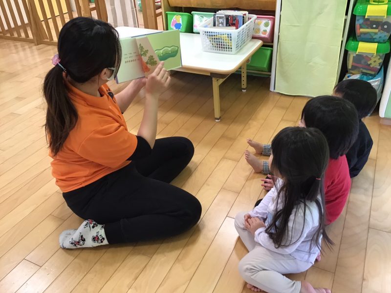 今日は、2歳児さんの絵本の読み聞かせの様子をご紹介します?