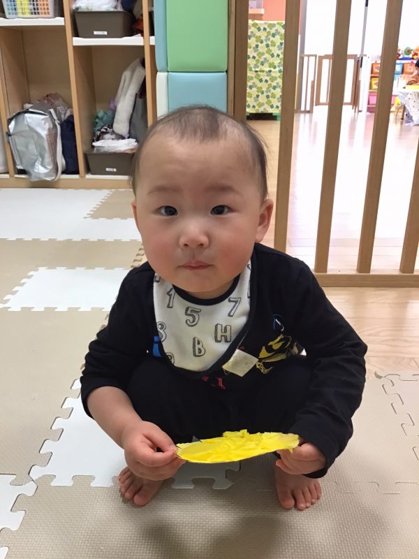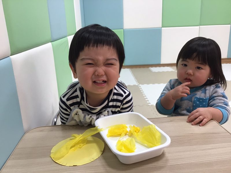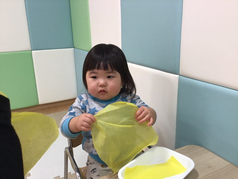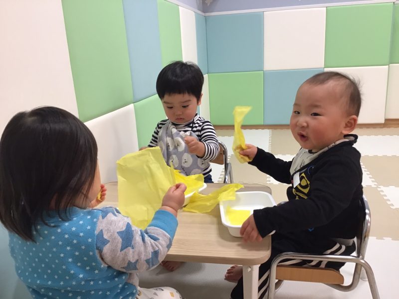 初めて花紙を使った製作に挑戦しましたが、新聞紙やチラシよりも薄く、柔らかいため感触を楽しみながら上手にちぎっていましたよ??
