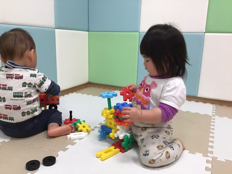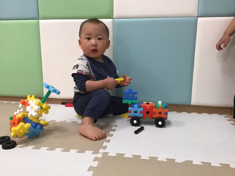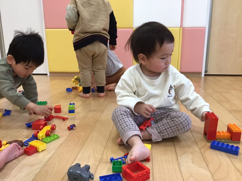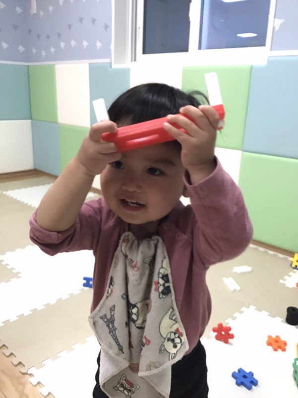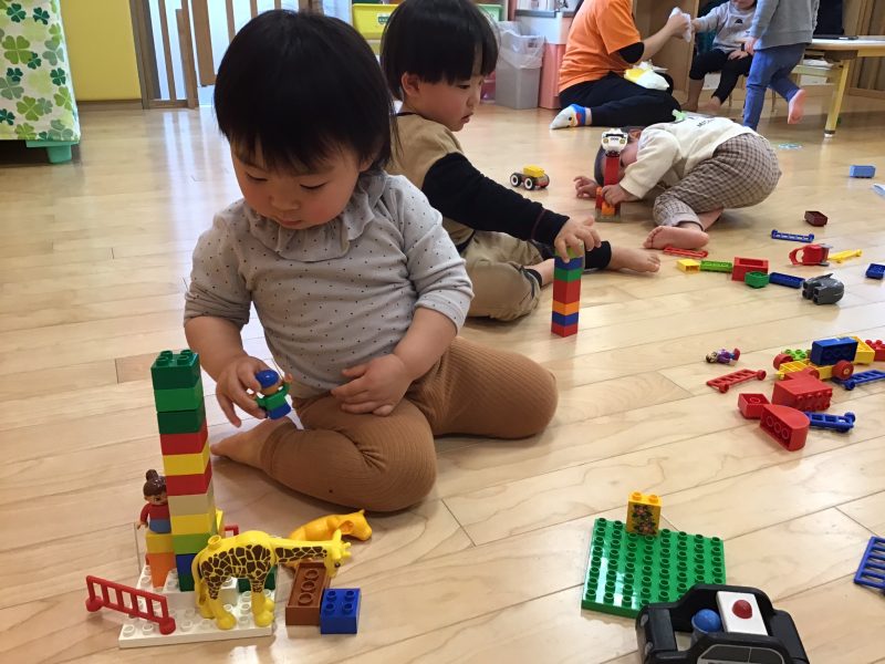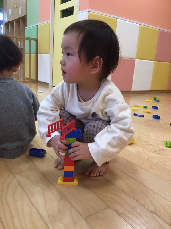 以前までは、ブロックを繋ぎ合わせるのが難しかったもも組さんですが、今では手先も器用になり、自分達で好きな形を作って楽しんでいますよ??