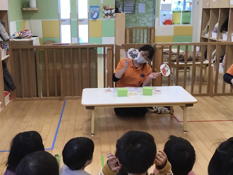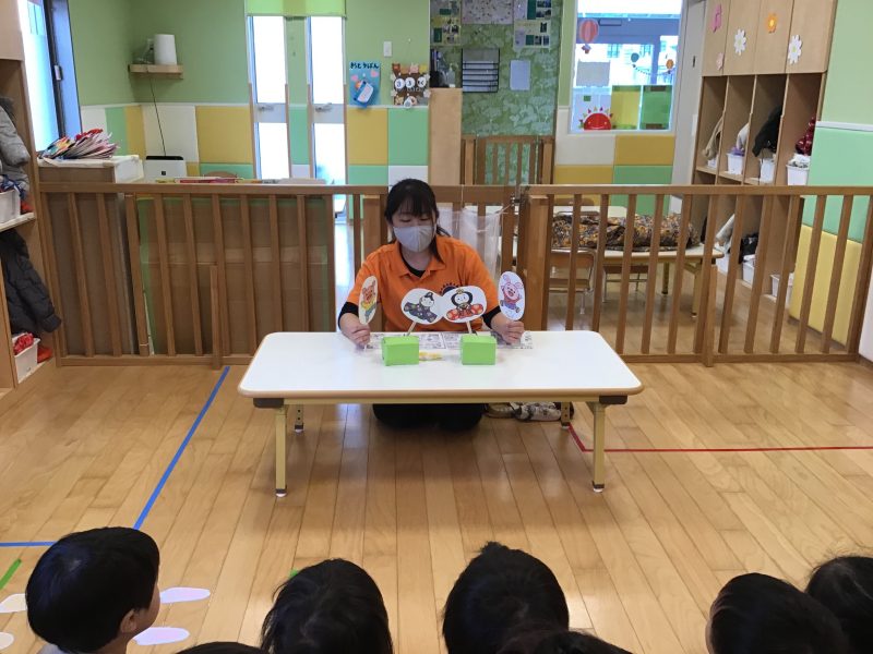 まずは、ひな祭りがどんな行事なのかを知るために先生のペープサートを見ましたよ?⭐️