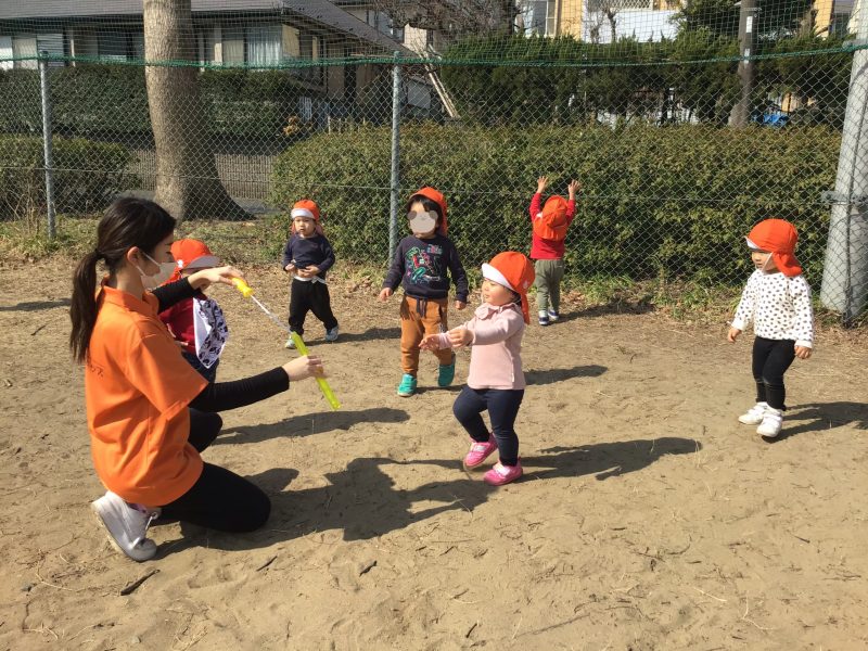 お散歩では、綺麗なピンク色の梅の花が咲き、子ども達の嬉しそうな姿が見られますよ??