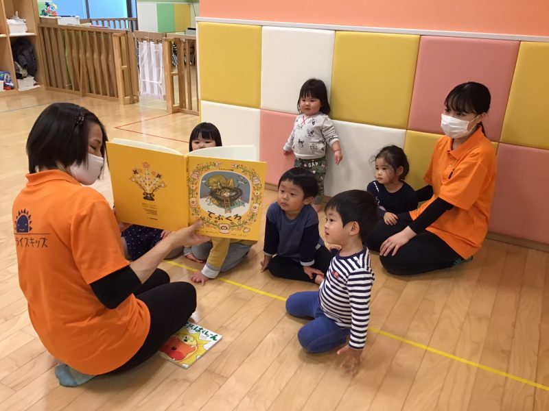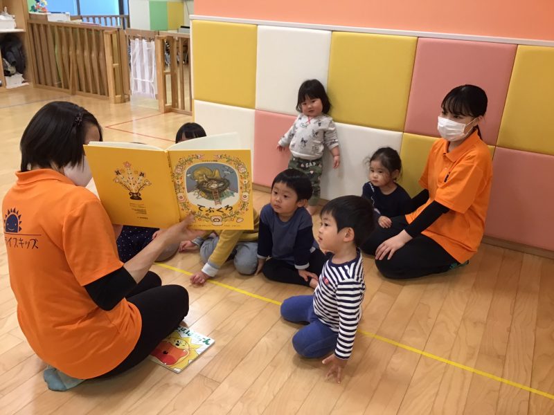 今日は、お迎え前の時間に行っている絵本の読み聞かせの様子をご紹介します?