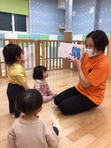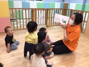 今日は午後の室内遊びの時間に絵本の読み聞かせをしましたので