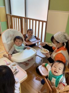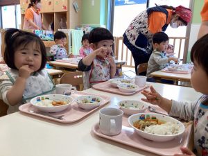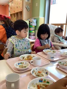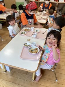 お部屋で身体を動かした後は、お待ちかねの給食タイムです⏰?