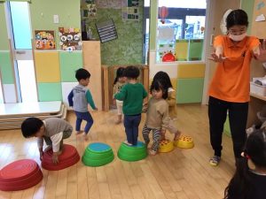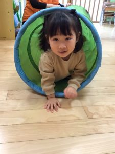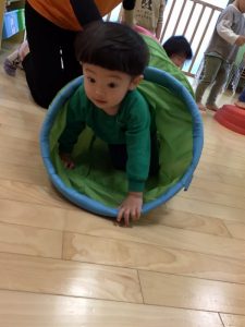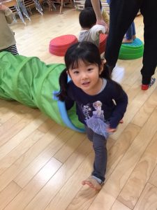 りんご組さんはこの日、平均台とトンネルを使い身体を動かして遊びました?‍♀️?
