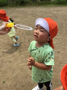 先生と一緒にシャボン玉を吹いてみましたよ✊?