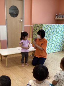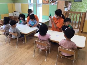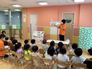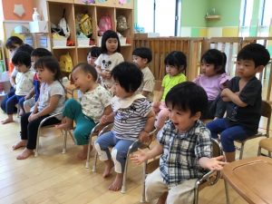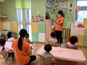 最初はみんなが大好きな絵本の読み聞かせからです?