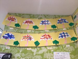 りんご組さんの作品は、来週の火曜日まで玄関に飾ってありますので、ぜひご覧ください?