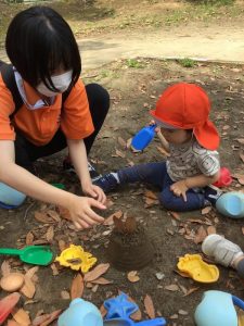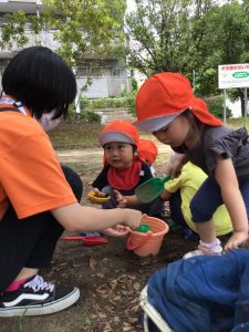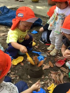お砂場でのケーキ作り、とっても盛り上がりましたよ??