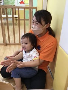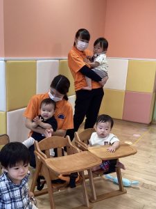 お散歩や室内遊びの後の子ども達は汗を沢山かいているので、みんなでお着替えをして心地良く過ごすことができています?