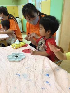 絵の具が手につくのが苦手でも、先生と一緒なら大丈夫✊?