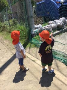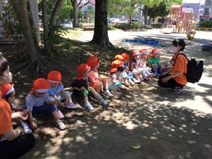 保育園に帰る前に?木陰で、水分補給と休息をとり元気に帰りました?✨