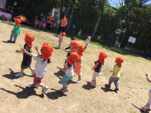 ?風が吹くと、シャボン玉も流れていき、それを一生懸命追いかけていく子ども達がとっても可愛いらしかったです☺️