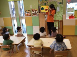 絵本が始まると、??「スイカ食べたい❗️?」??「花火見たことあるよ!?」と教えてくれる姿が見られました☺️?