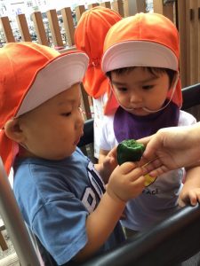 いちご組さんピーマンを見て、頭に沢山ハテナ❔が浮かんでいましたよ?