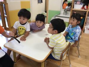 少し時間が経つと子ども達の方から笑い声が聞こえたので見てみると、、あれれ❓??
