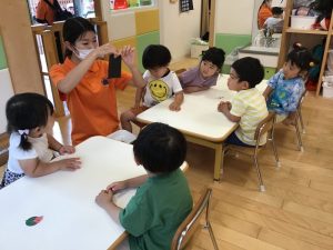 いつも突然面白いことをしてくれるりんご組さんに先生たちも思わず笑ってしまいます??