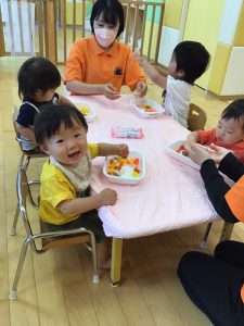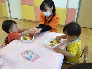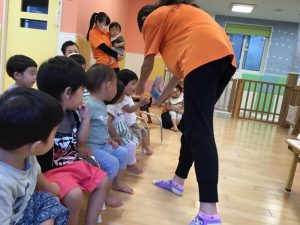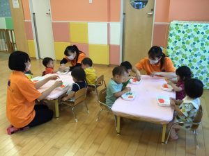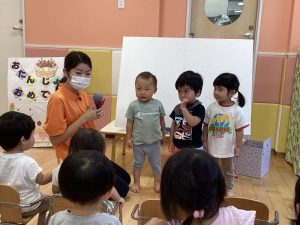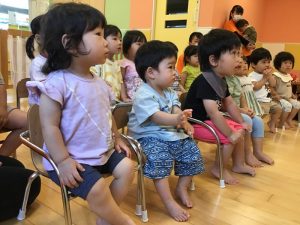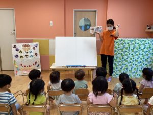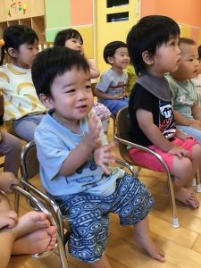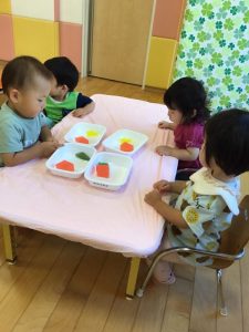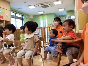 さて、今週は7月生まれのお友達の誕生日会?がありましたのでそのご様子と、各クラスの感触遊び✋のご様子をご紹介致します❣️