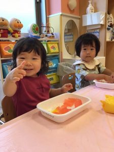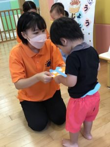 そして、りんご組のお友達は、最近言葉数も増えてきて、ごっこ遊びや見立て遊びをお友達と楽しむ姿が見られますよ??