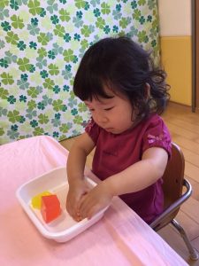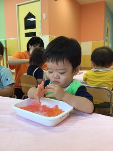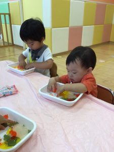 続いて、いちご組さん?ともも組さん?は寒天遊びに挑戦しましたよ✊✨
