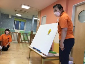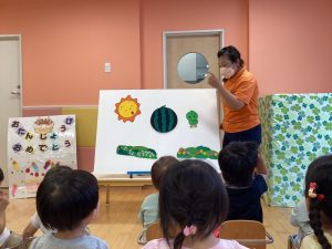 果物が次々に出てきては、様々な色に変身するひよこちゃんに子ども達も「うわ〜?」と言いながらひよこちゃんに釘付けでしたよ?✨