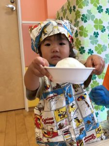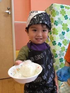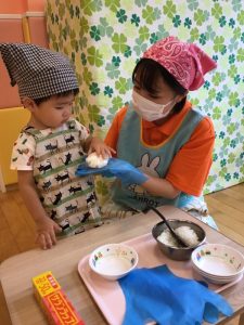 絵本の後は、早速おにぎり作りです☺️