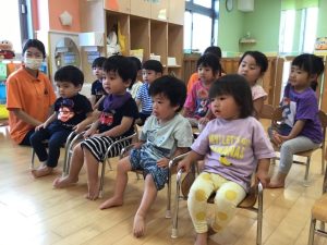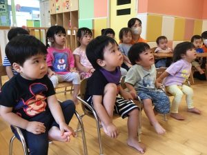 何が始まるのかな?と不思議そうな表情で見ている子どもたち🧐💭