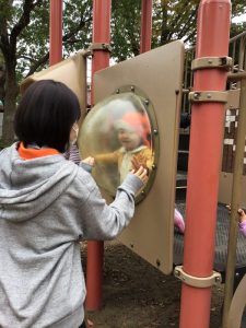 滑り台へ向かう途中の踊り場にある窓も大人気ですよ🪟🎶