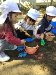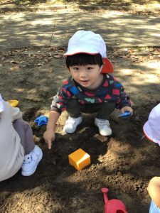 砂場では、シャベルやバケツを使ってお料理教室が開催されています😆🥣
