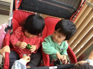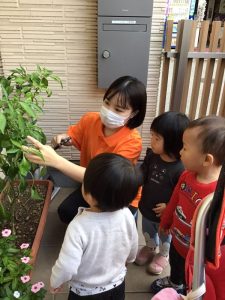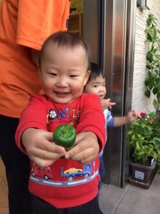 この日はピーマンが大きく育ったので、いちご組さん🍓ともも組さん🍑に収穫のお手伝いをしてもらいました😊