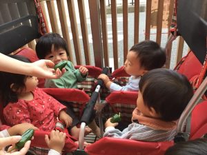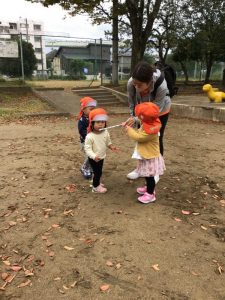 先生と一緒に持ち手を支え、年下のお友達を優先してあげる優しいりんご組のお姉さんがいましたよ👧🏻🍎