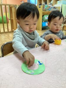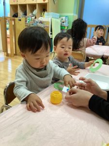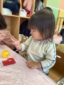 いちご組さんは、のりの使い方にも少しずつ慣れてきて、どれくらいの量とったらいいのか実験しながら、覚えていっていますよ😊✨