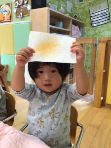 スルスルスル〜と色がついていく様子を不思議そうにじっと見つめていましたよ😊✨