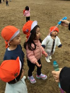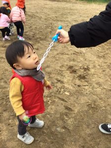 先生と一緒にシャボン玉を吹いてみました🫧