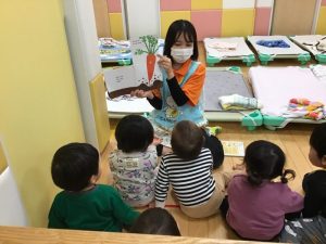 この絵本を通して沢山のお野菜を覚えられるので、お給食に同じ野菜が出ると「絵本にあったね❗️」というお話も出てくるんですよ☺️