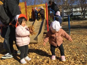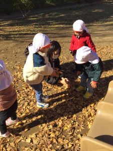 お友達や先生と一緒に落ち葉を集めて…🍁