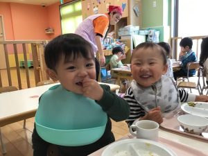 お友達は白いご飯がとっても大好きなんだそうです😋💓「美味しいよね〜🎶」と先生とお友達も盛り上がりました💕