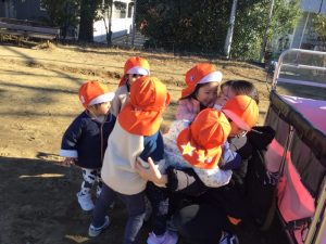 両手いっぱいになるくらいどんぐりを集めたり、おててが真っ黒くろになるくらい砂場遊びを楽しんだり、かけっこでお友達と競争したりと沢山遊んで保育園に帰りました🌟🌟🌟
