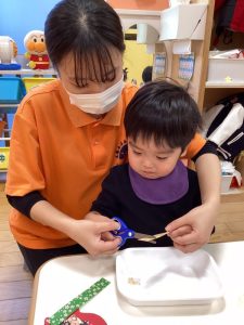 お友達の様子もしっかり見守りながらグー✊パー✋と口ずさみ、一生懸命はさみを動かしていましたよ✨✨