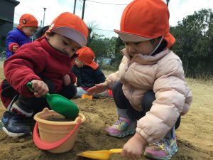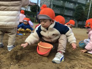 公園では、砂遊びやかけっこ、どんぐり探しや探索などなど、、好きな遊びをみつけて楽しんでいます😊