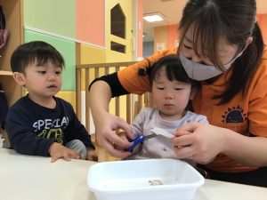 はさみを初めて見るお友達もいて、とても真剣な表情でお話を聞いてくれましたよ☺️